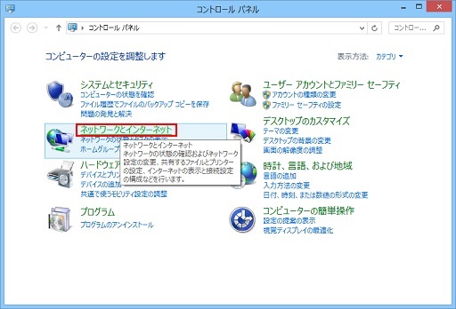 1 コントロールパネルを開き、「ネットワークとインターネット」→「インターネットオプション」をクリックします。