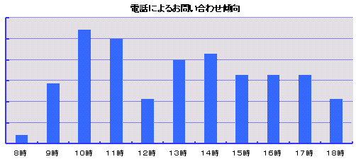なお、電話によるお問い合わせは、10時台、11時台の時間帯は、つながりにくくなっています。緊急ではないお問い合わせにつきましては、次に掲げるお問い合わせの傾向を参考に、つながりやすい時間帯をご確認の上、お電話いただきますよう、よろしくお願いいたします。