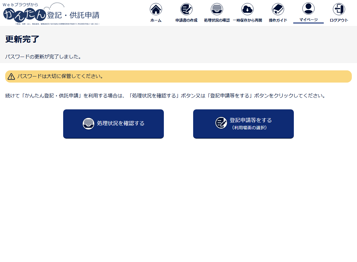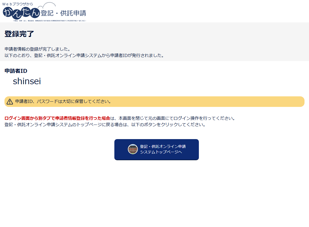 登録した申請者ID及びパスワードは、「申請用総合ソフト」又は「かんたん登記・供託申請」いずれを利用する場合も共通のものを利用することができます。