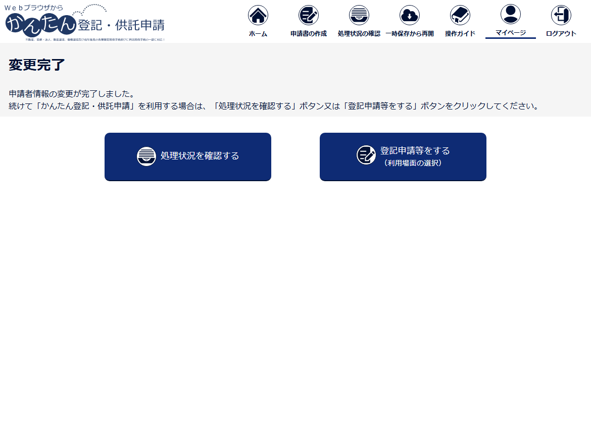 6 申請者情報の変更が完了し、「変更完了」画面が表示されます。