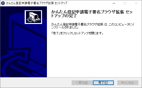 4 「かんたん登記申請電子署名ブラウザ拡張機能」が追加されましたので、右上の「×」ボタンを押します。